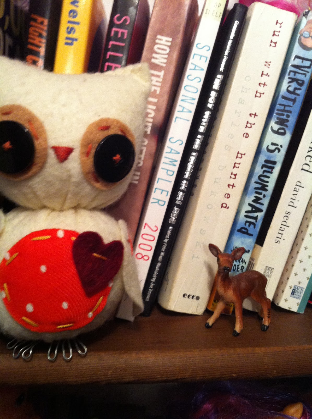 I love the little white owl. He's so tiny and sweet. The glass owl was my moms, I always thought it was an owl with eggs in her tummy. It's kinda weird.